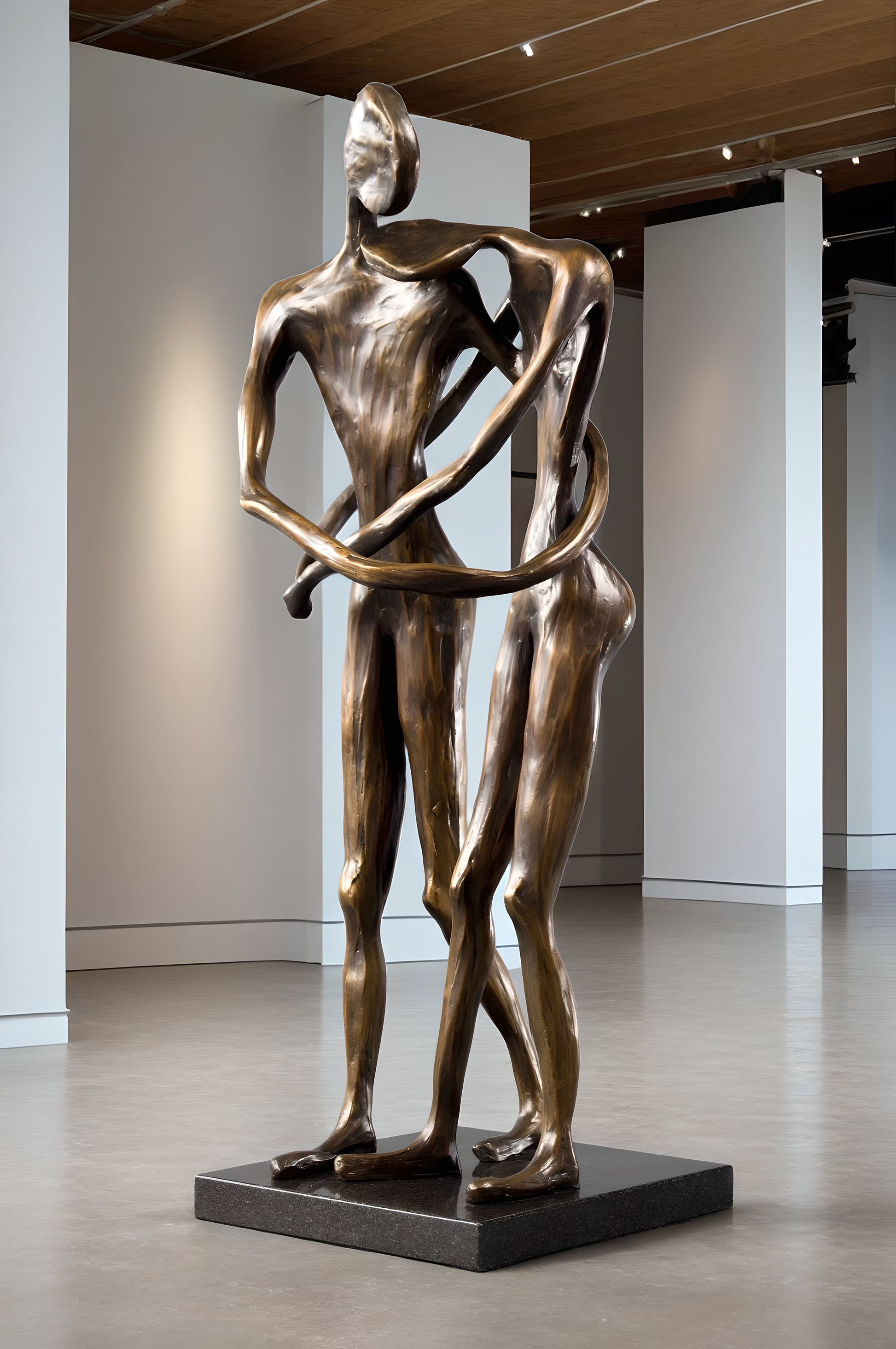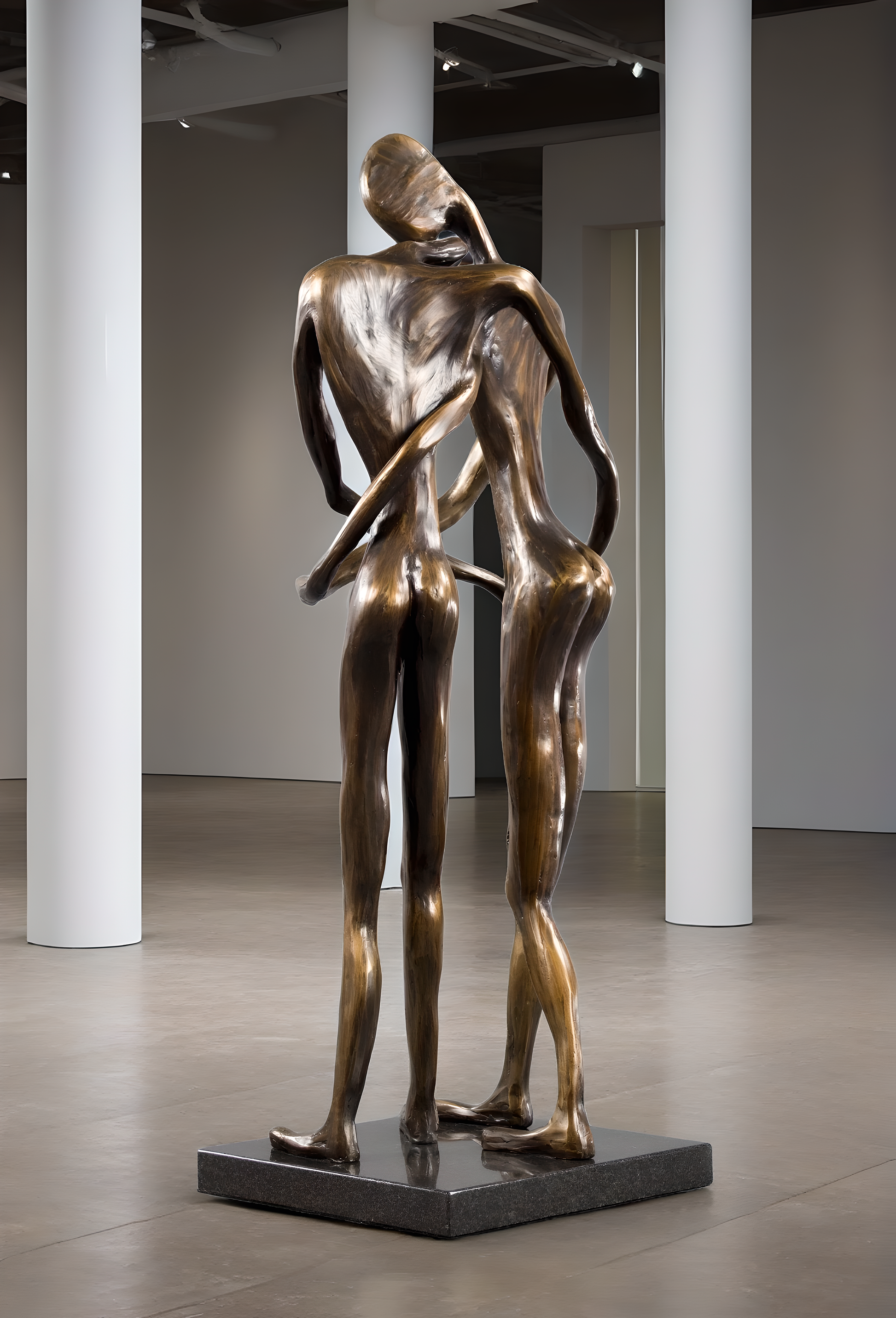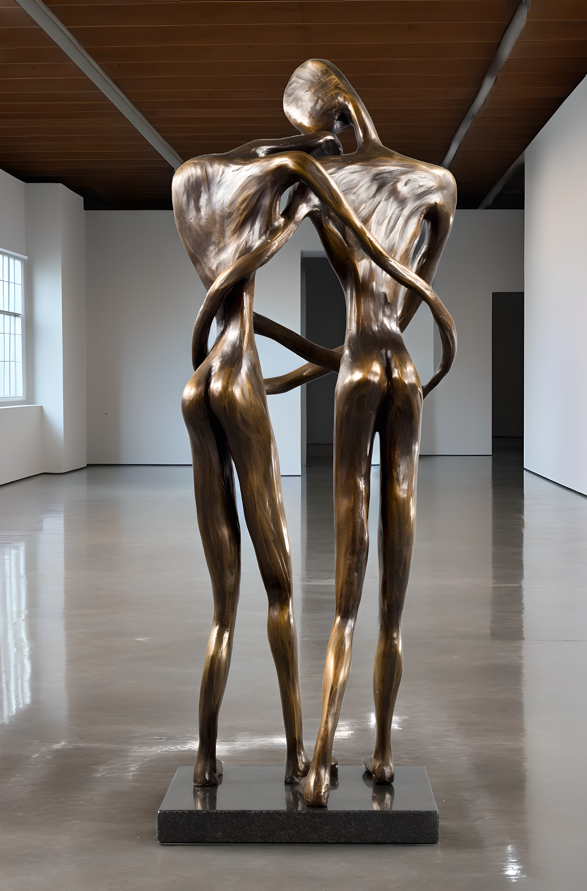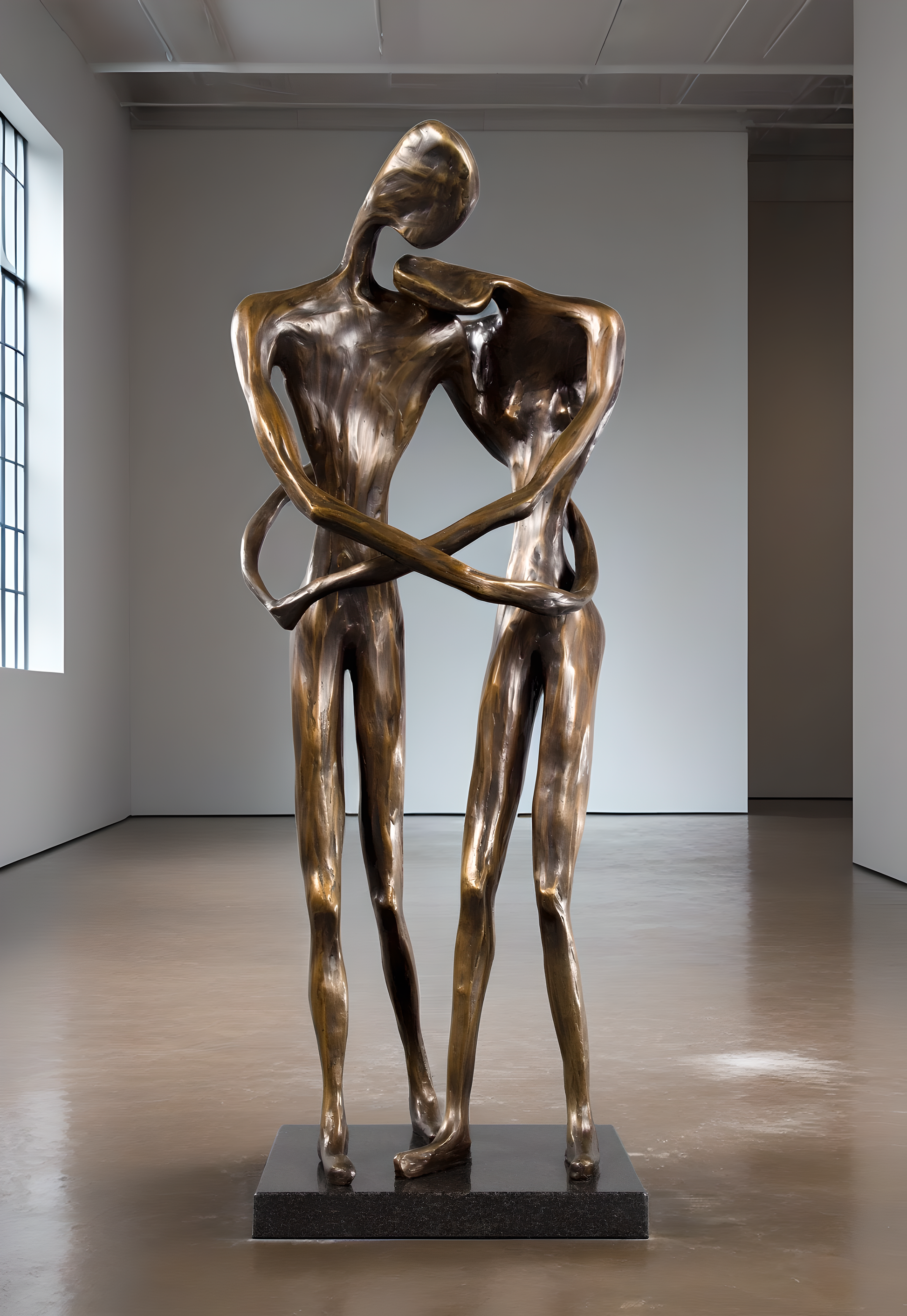 "With One Breath," I wanted to capture the essence of a deep connection and timeless love. I intended for the posture of the sculpture to communicate love through body language, capturing the essence of an embrace that often eludes verbal description. The intertwined figures, poised in a moment of gentle embrace, echo the depth of the sentiment, "If I had to choose between breathing and loving you, I would use my last breath to tell you I love you."